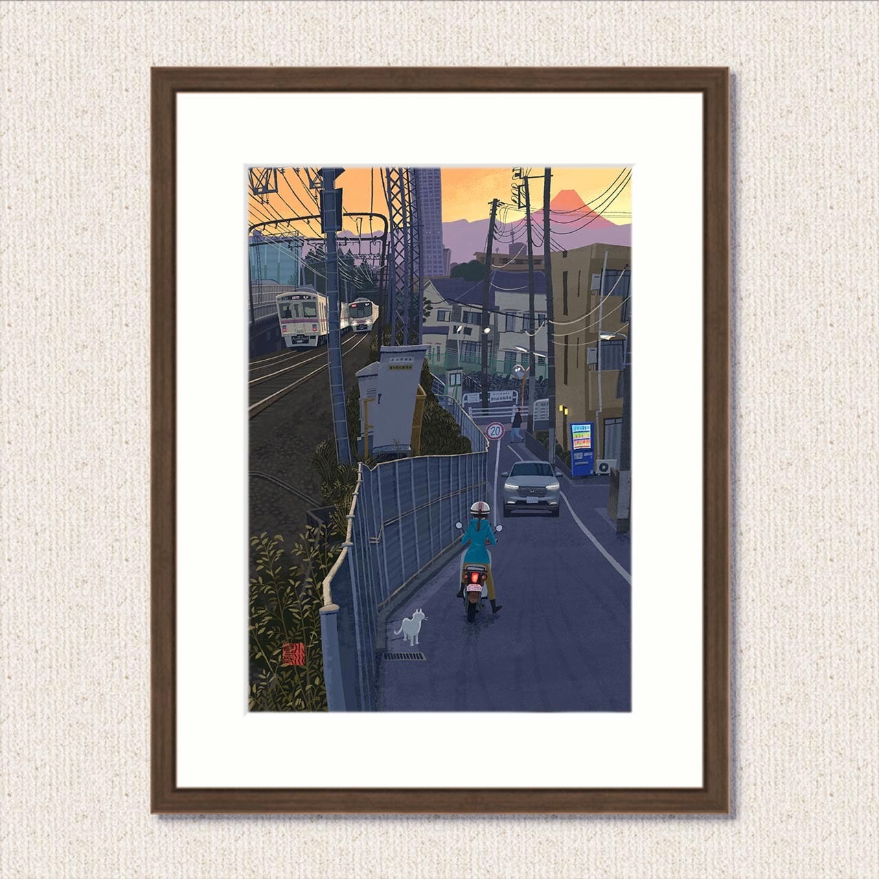 額装ジークレー版画『京王線つつじヶ丘駅・富士山の見える坂』八切りサイズ