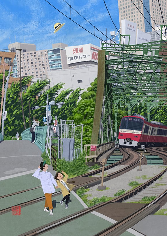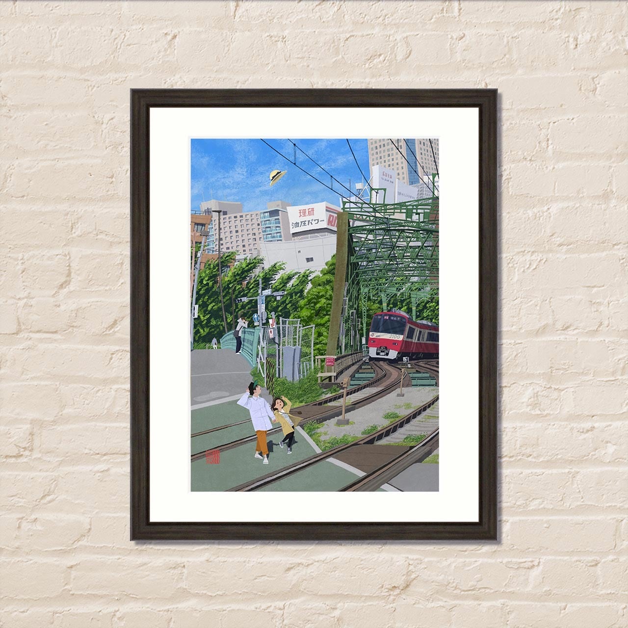 額装ジークレー版画『京急本線・八ツ山橋』八切りサイズ