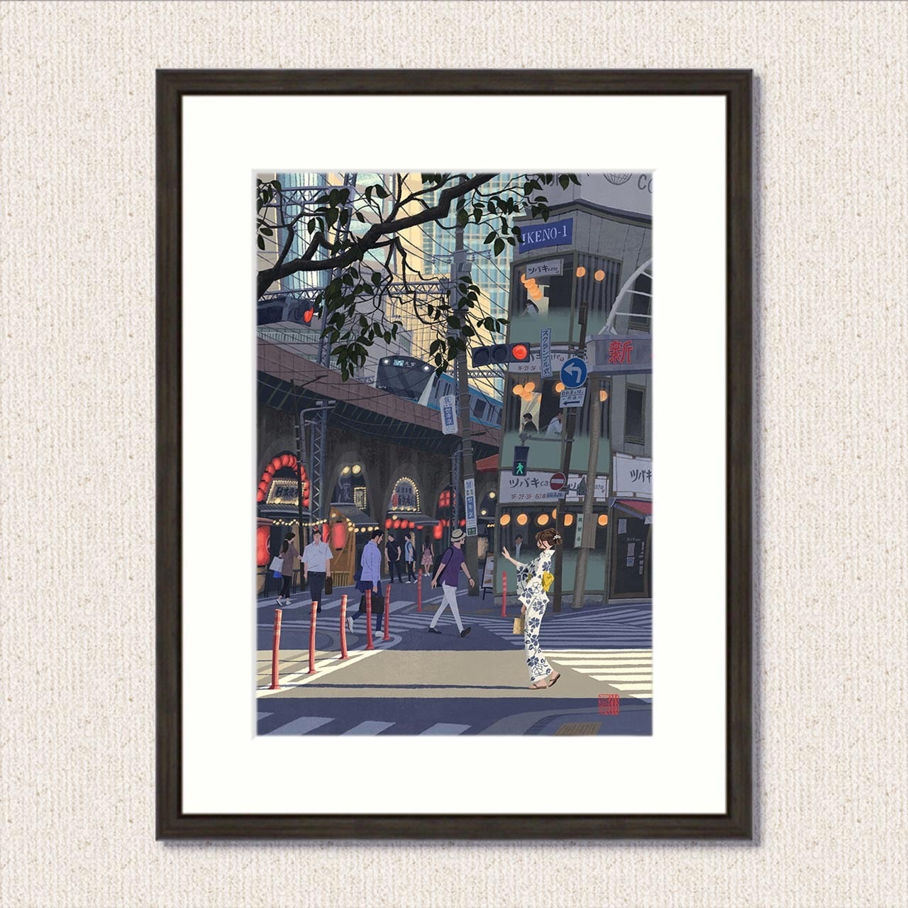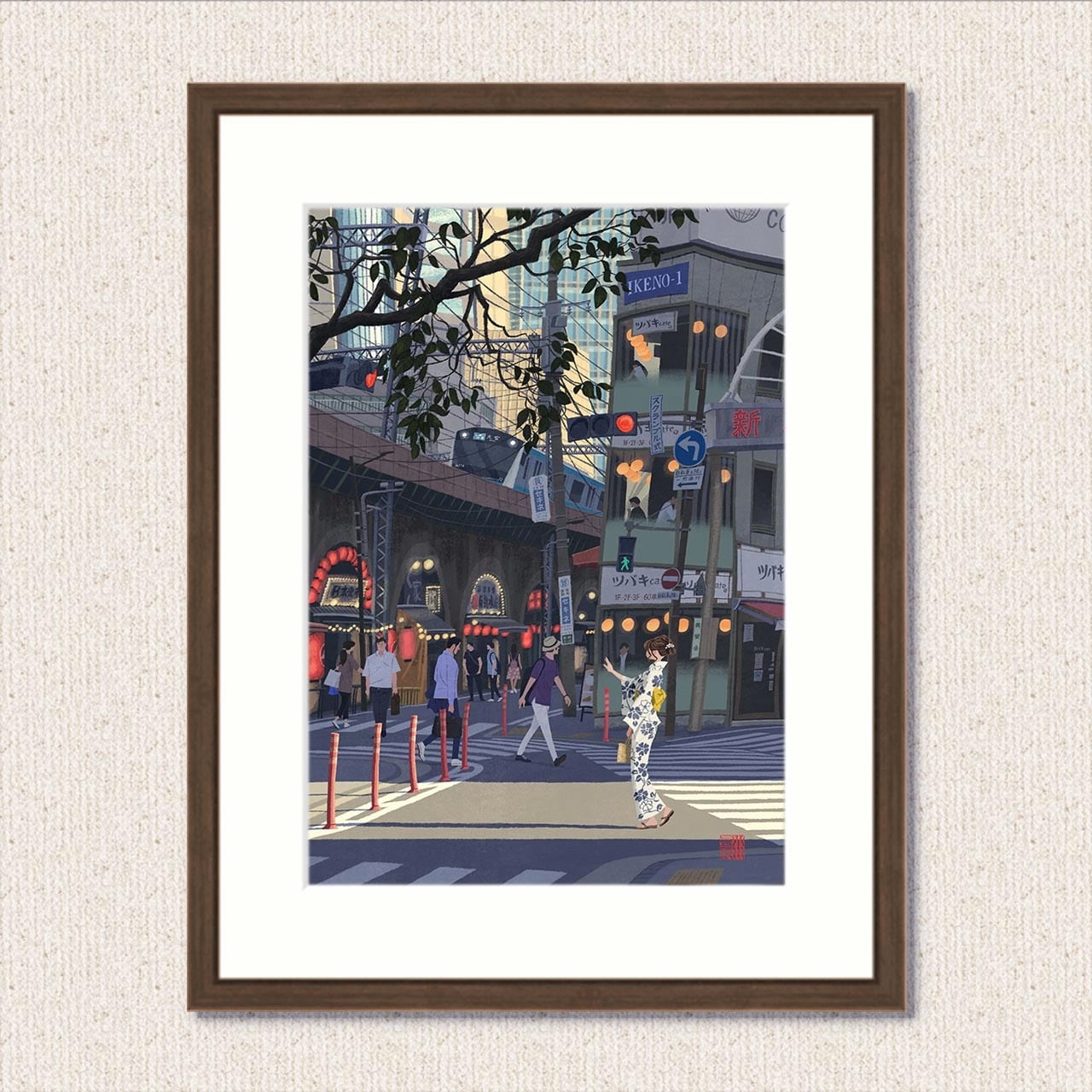額装ジークレー版画『新橋・夏の夕景』太子サイズ