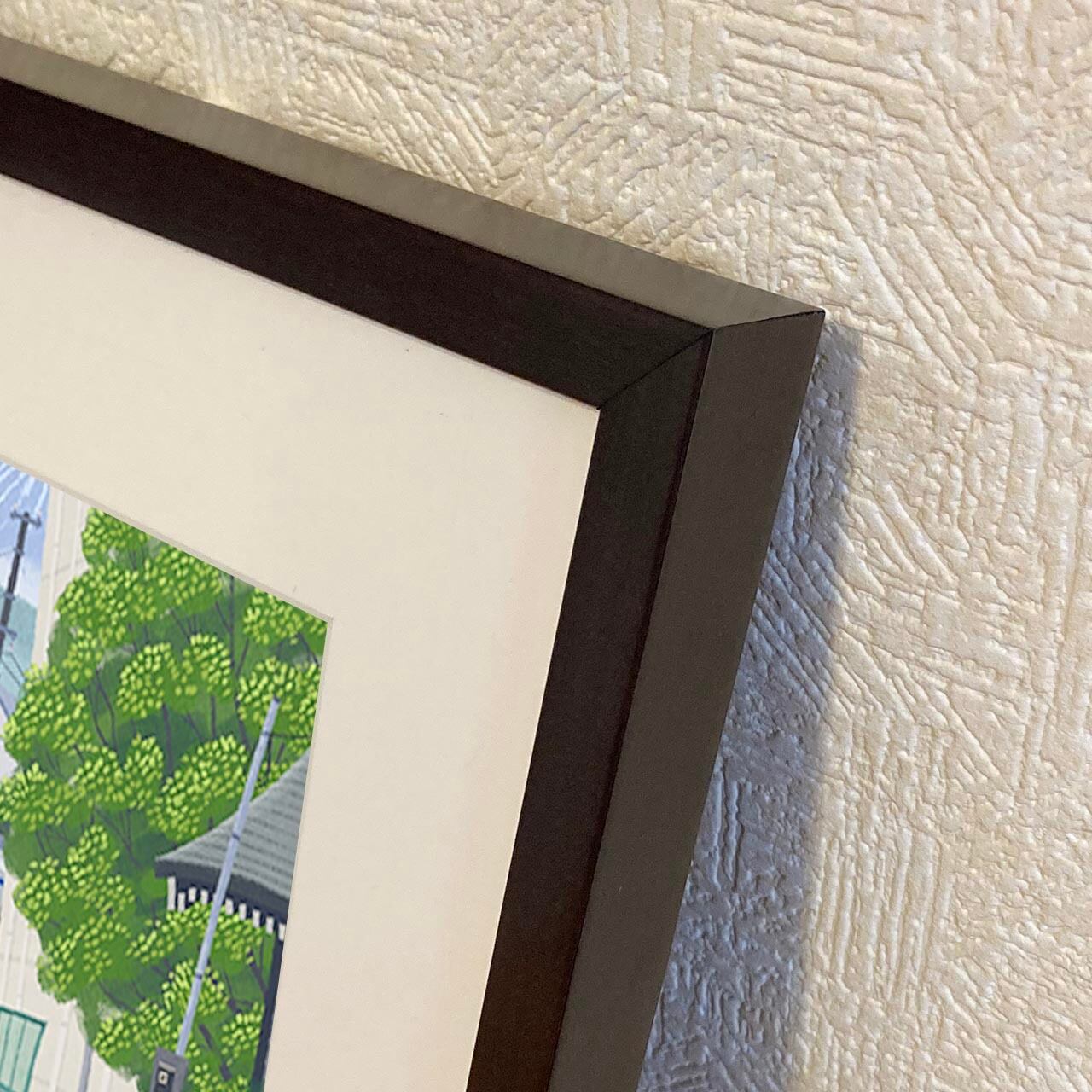 ・細め平型のシンプルな木製額縁で、シーンを選ばずお飾りいただけます。