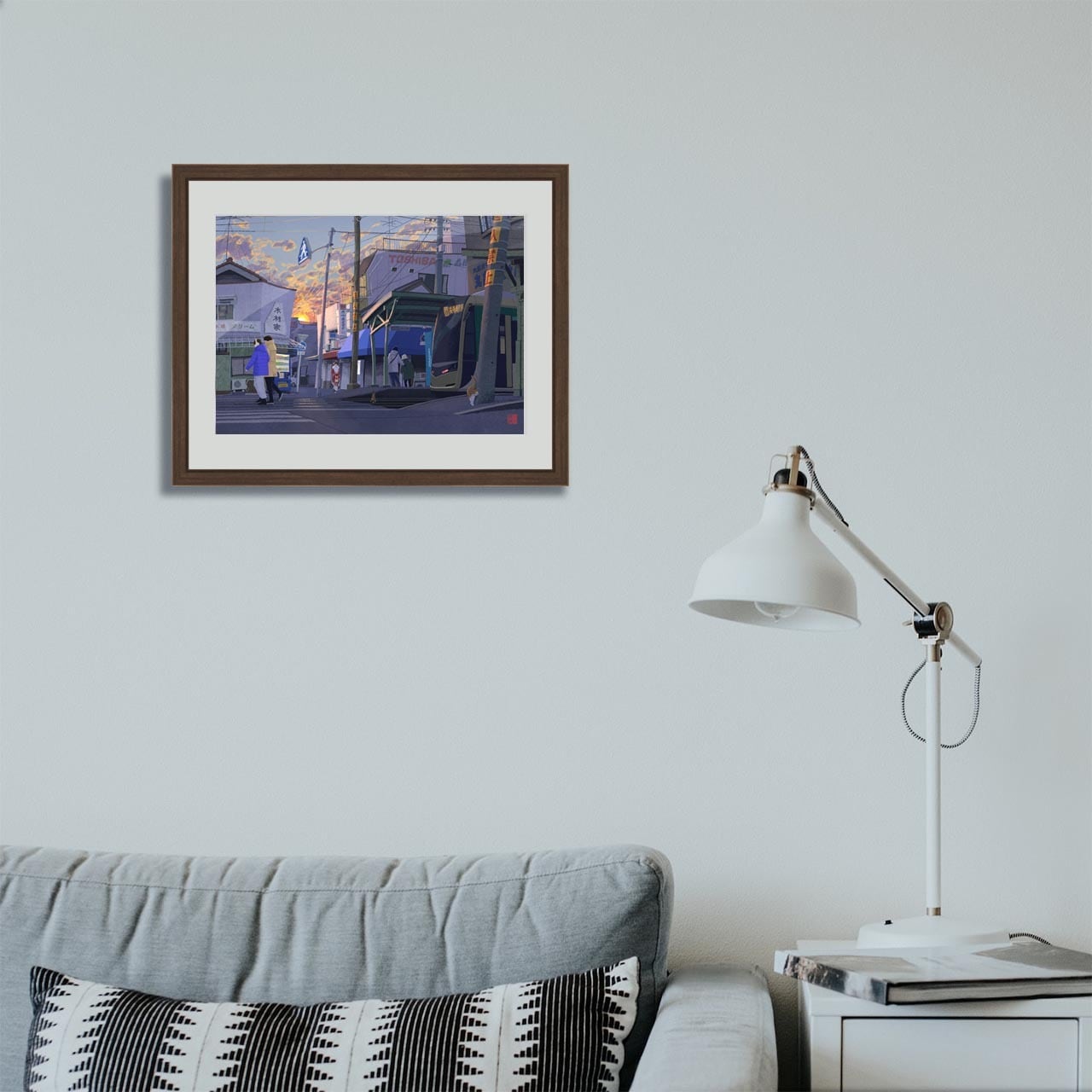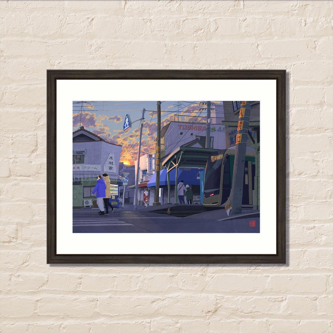 額装ジークレー版画『阪堺電気軌道・帝塚山四丁目停留場』八切りサイズ