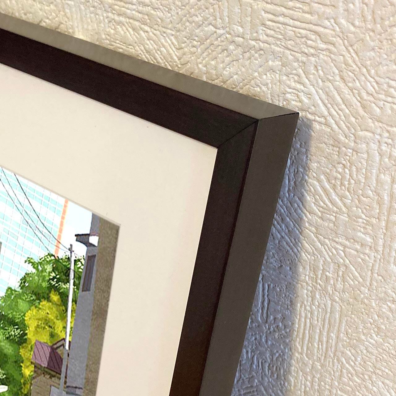 ・細め平型のシンプルな木製額縁で、シーンを選ばずお飾りいただけます。