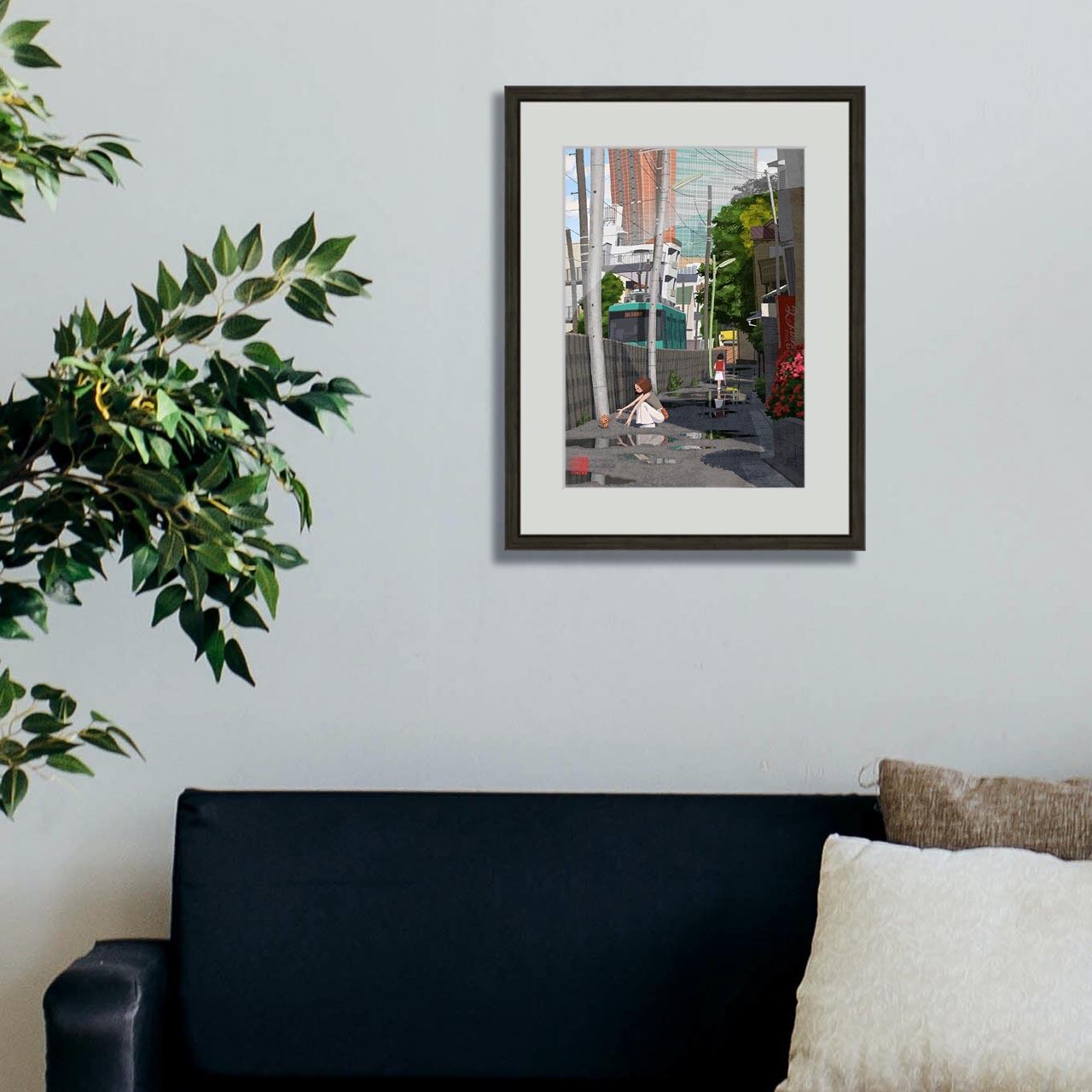 額装ジークレー版画『世田谷線・若林界隈雨上がり』太子サイズ
