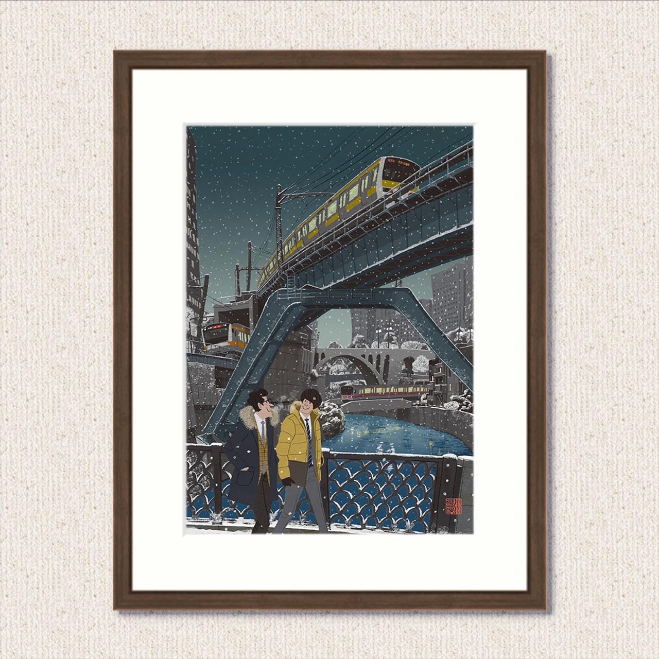 ・絵柄の枠外に直筆サインをお入れします(額装後はマットに隠れてサインは見えません)。