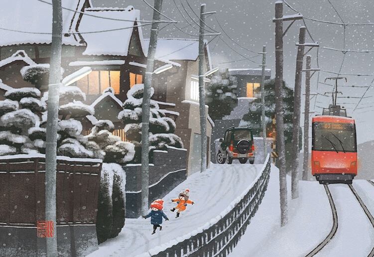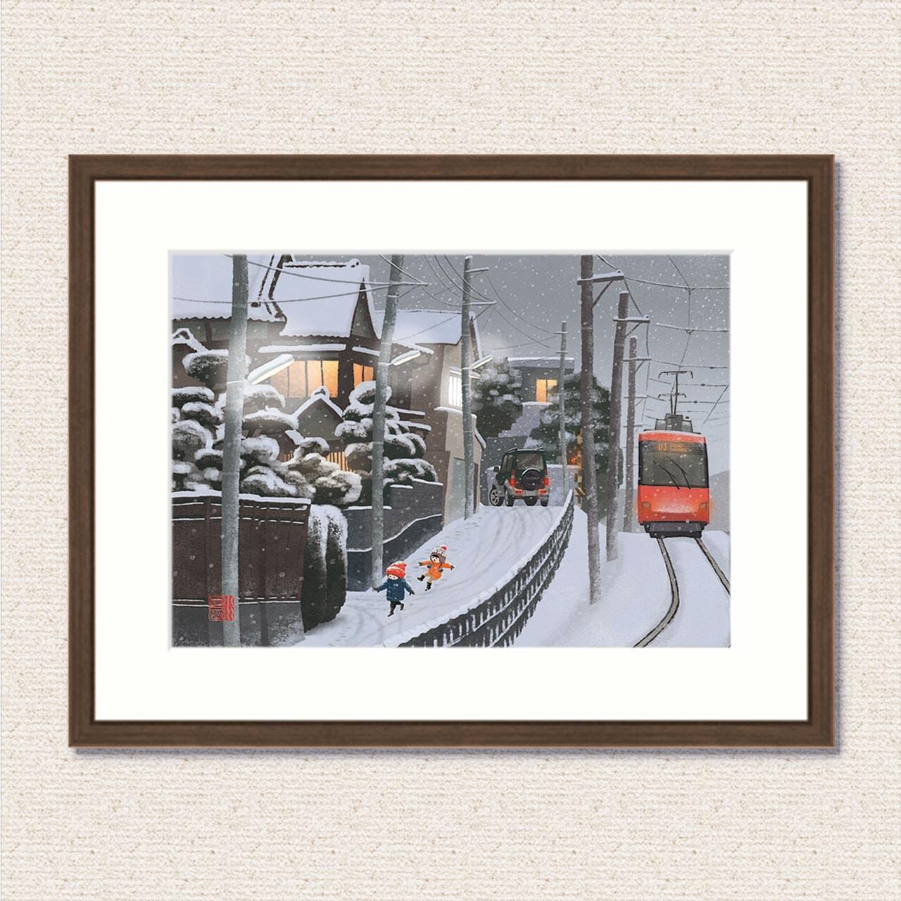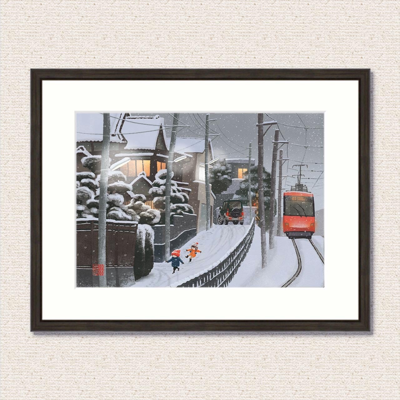 額装ジークレー版画『世田谷線・雪の山下』太子サイズ