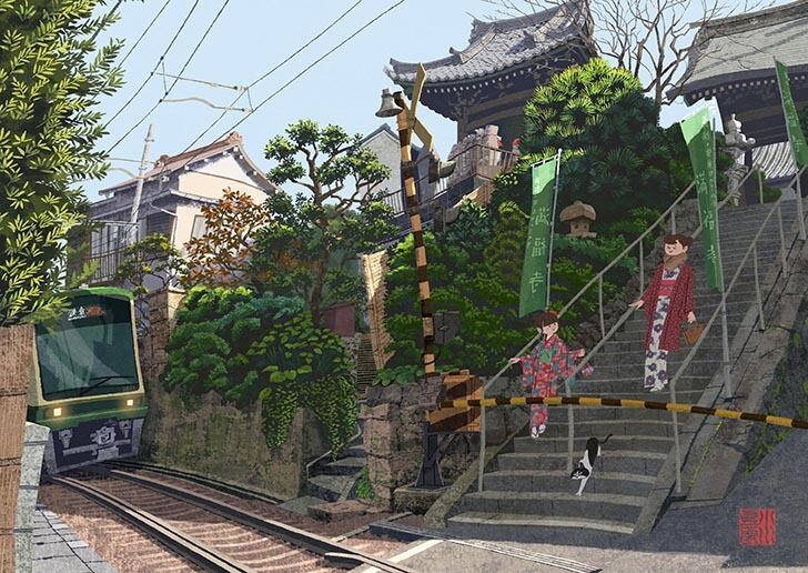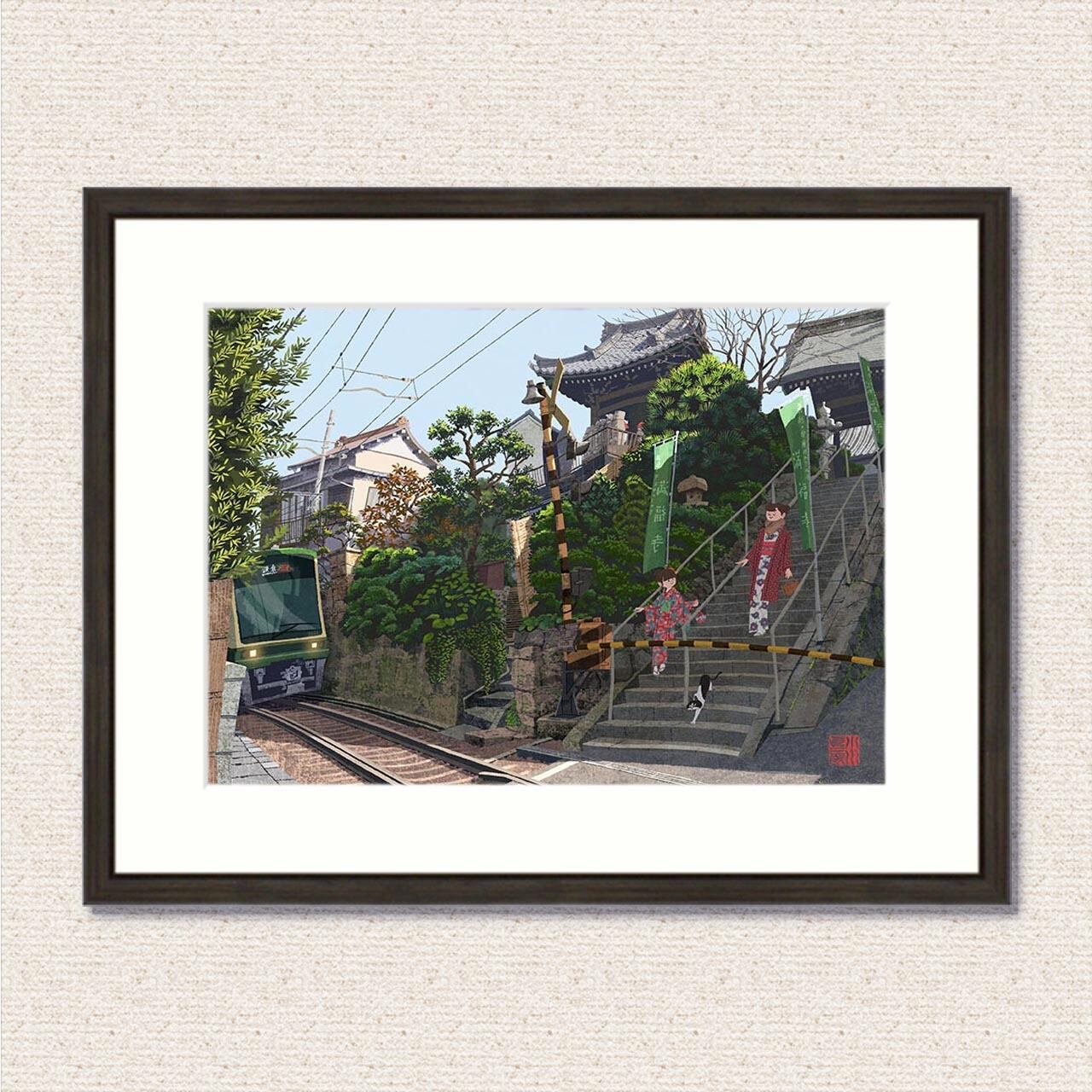 額装ジークレー版画『江ノ電・腰越満福寺』太子サイズ