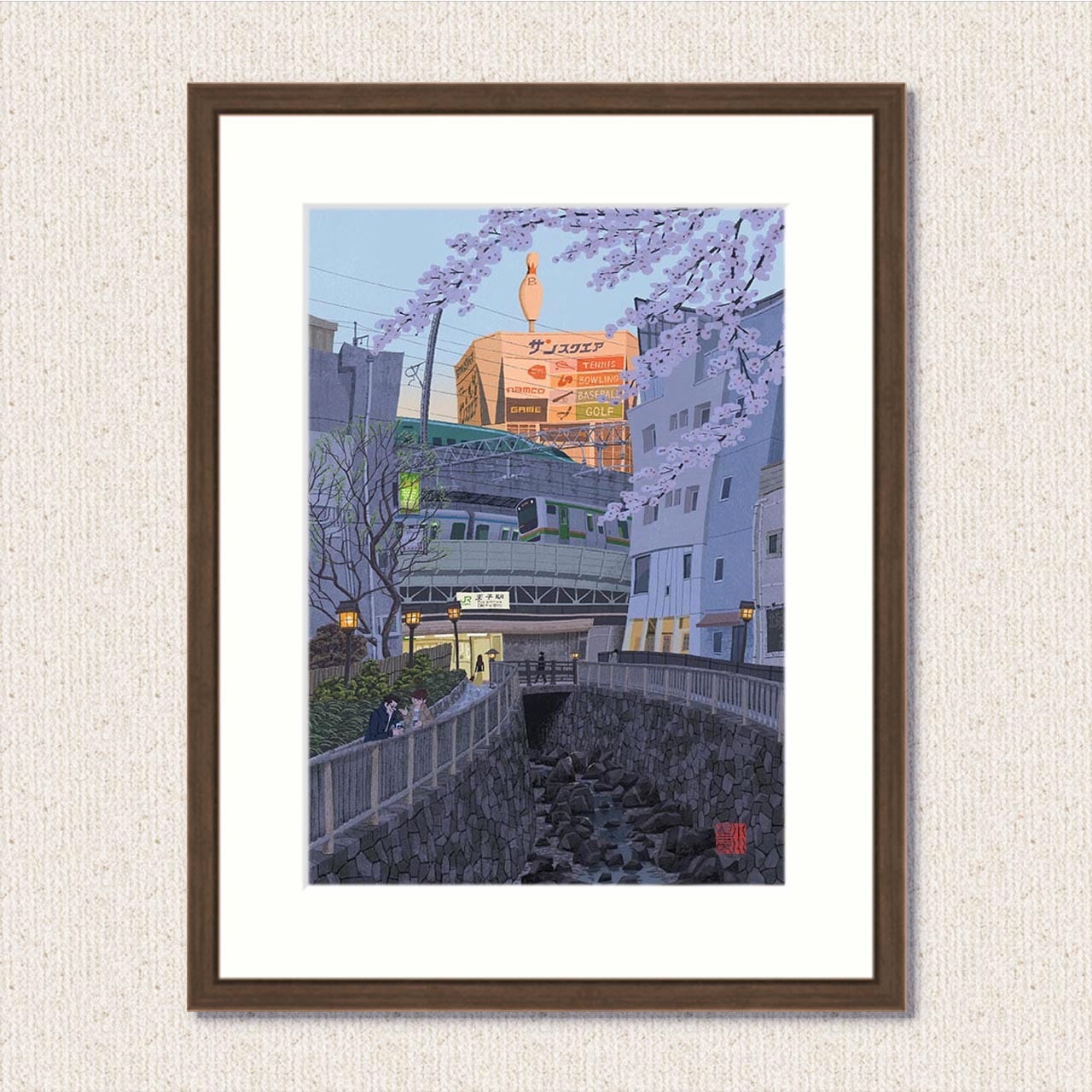額装ジークレー版画『春の夕暮れ王子駅』太子サイズ