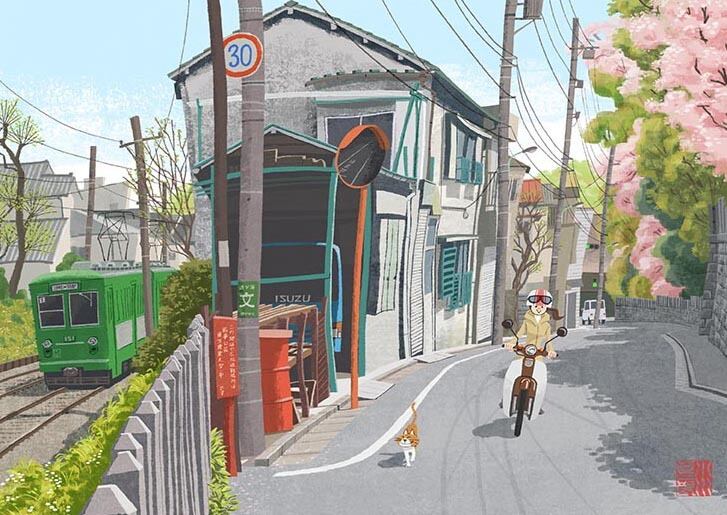 額装ジークレー版画『世田谷線・宮の坂』太子サイズ