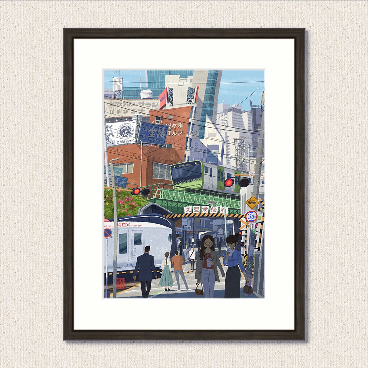 額装ジークレー版画『代々木・青山街道踏切』太子サイズ
