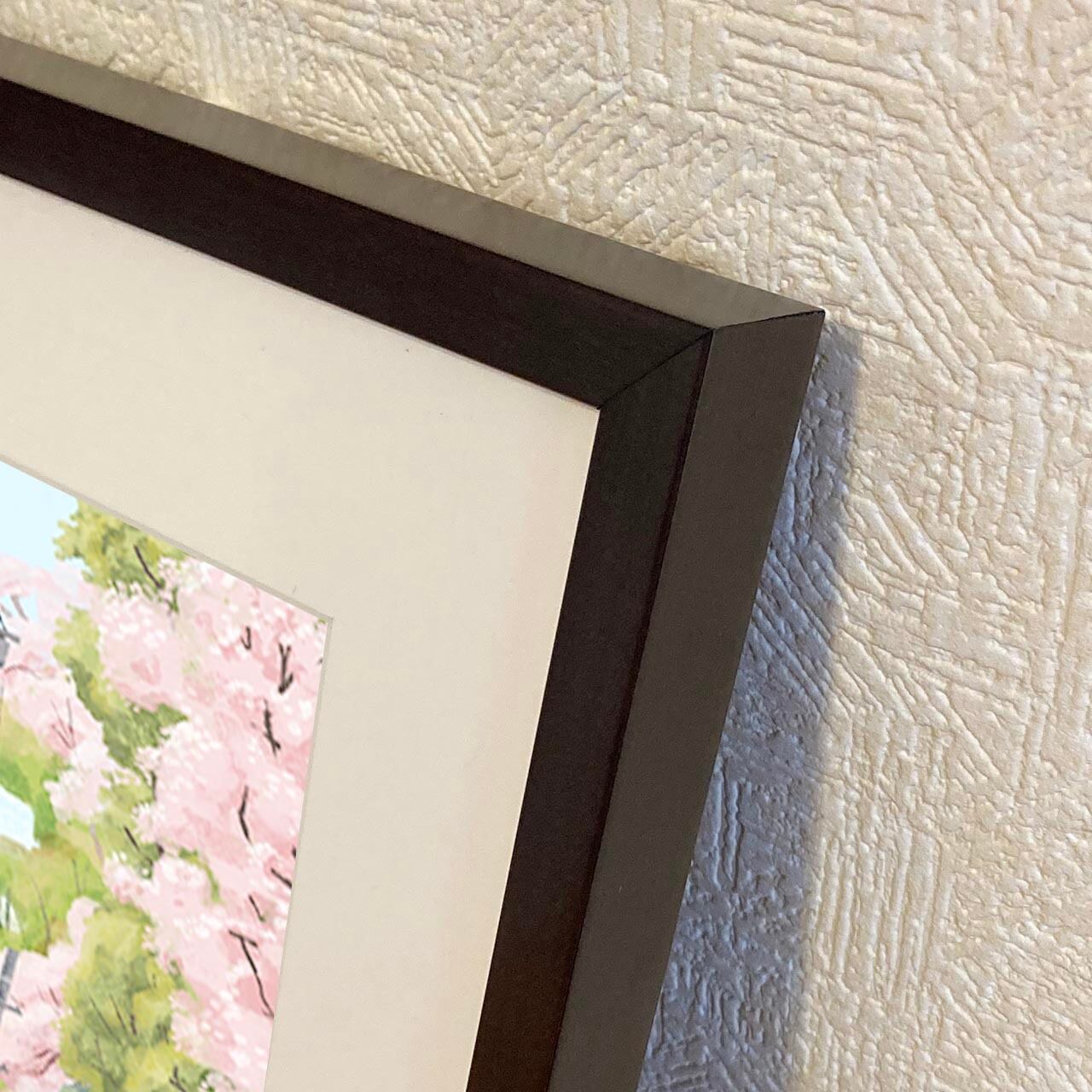 ・細め平型のシンプルな木製額縁で、シーンを選ばずお飾りいただけます。