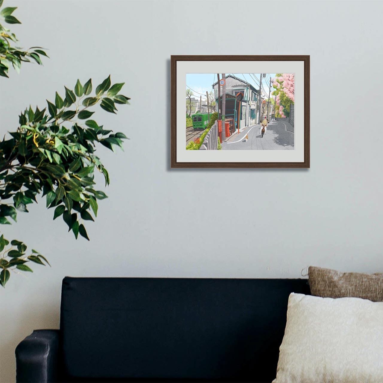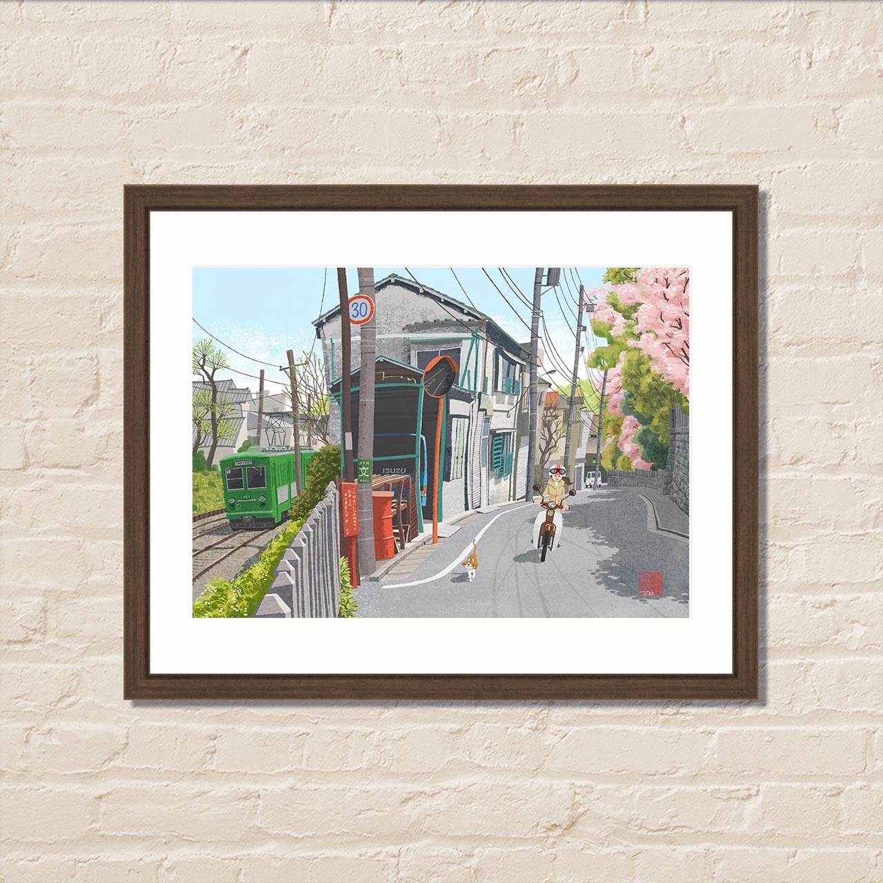 額装ジークレー版画『世田谷線・宮の坂』八切りサイズ