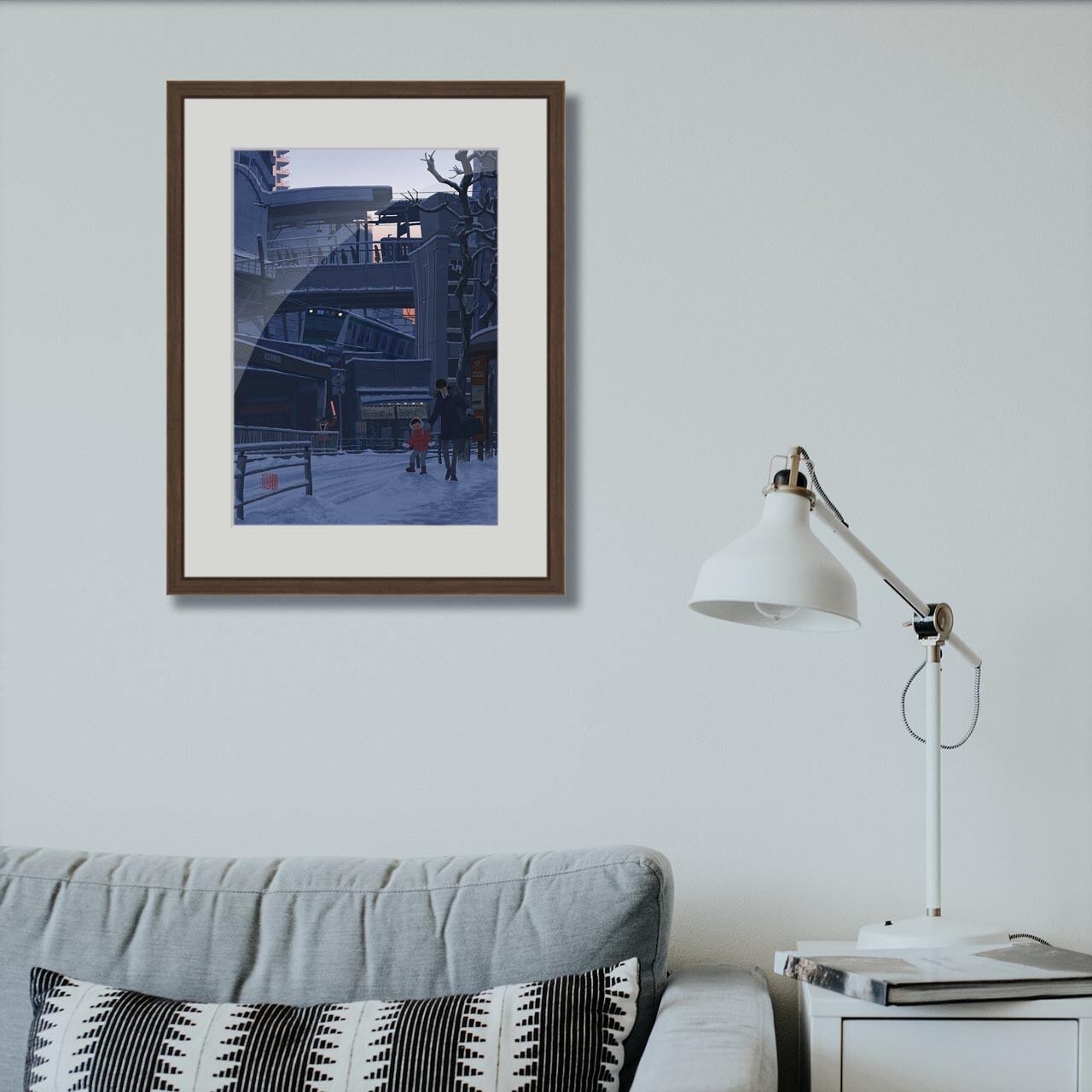 額装ジークレー版画『五反田駅西口・雪の朝』太子サイズ