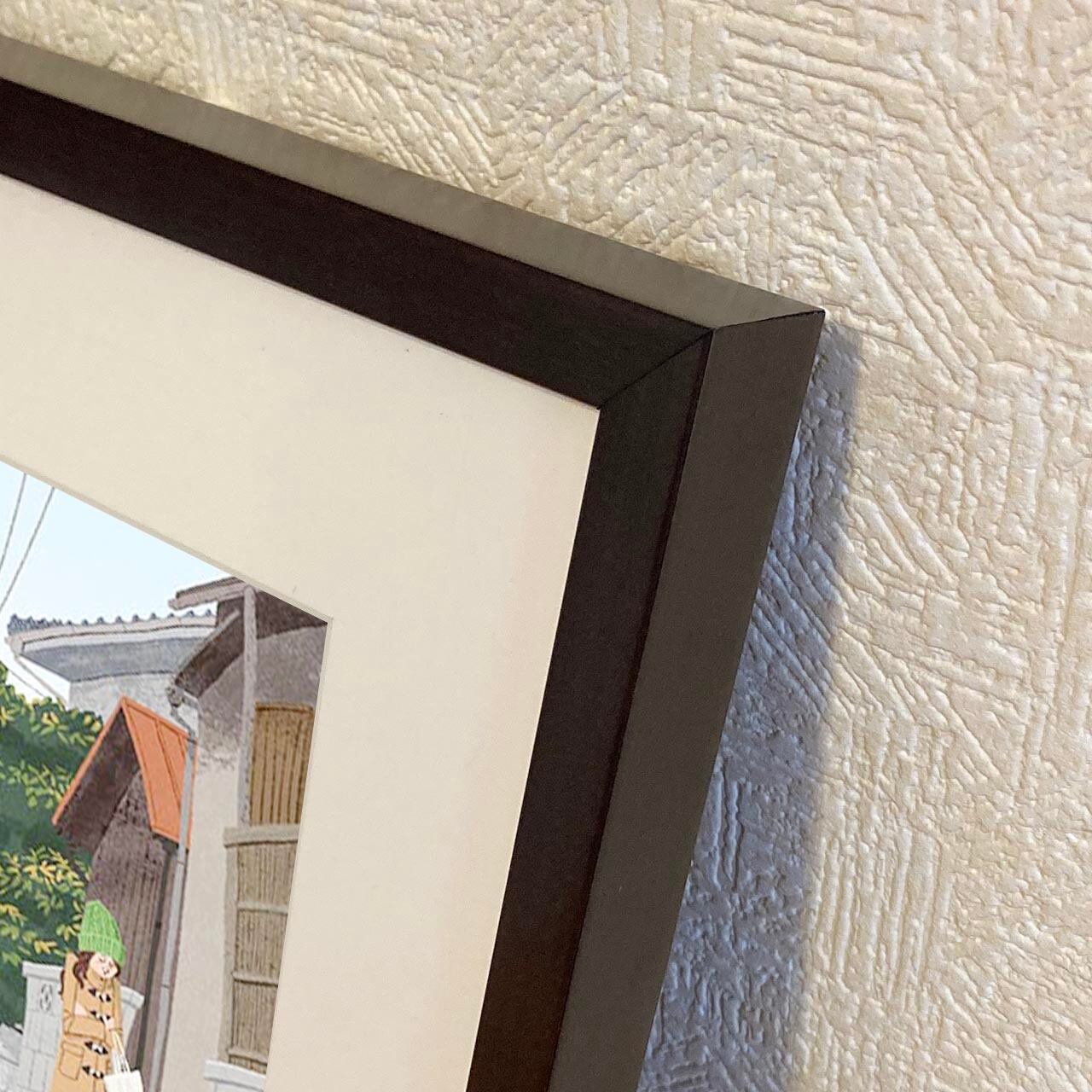 ・細め平型のシンプルな木製額縁で、シーンを選ばずお飾りいただけます。