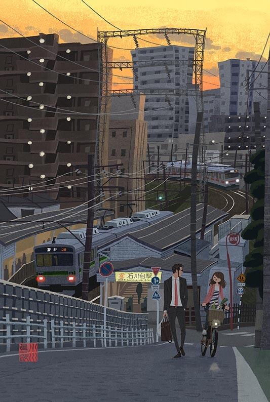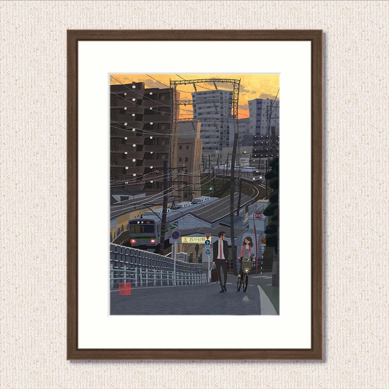 額装ジークレー版画『東急池上線・石川台』太子サイズ