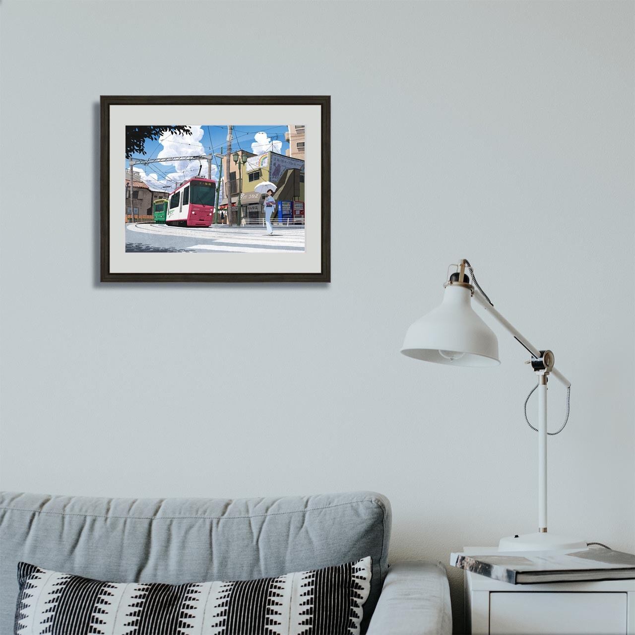額装ジークレー版画『都電荒川線・夏の飛鳥山』八切りサイズ