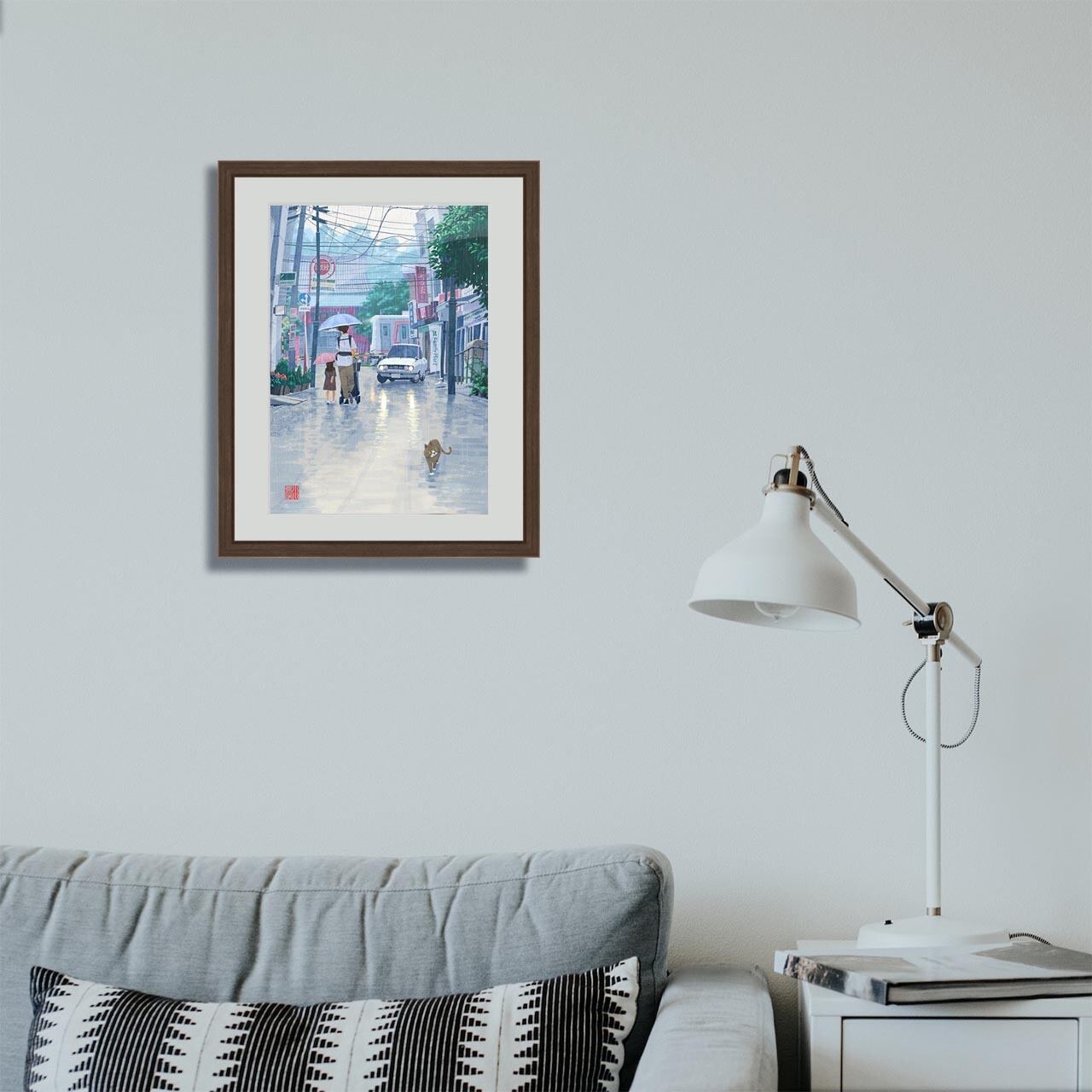 ・細め平型のシンプルな木製額縁で、シーンを選ばずお飾りいただけます。