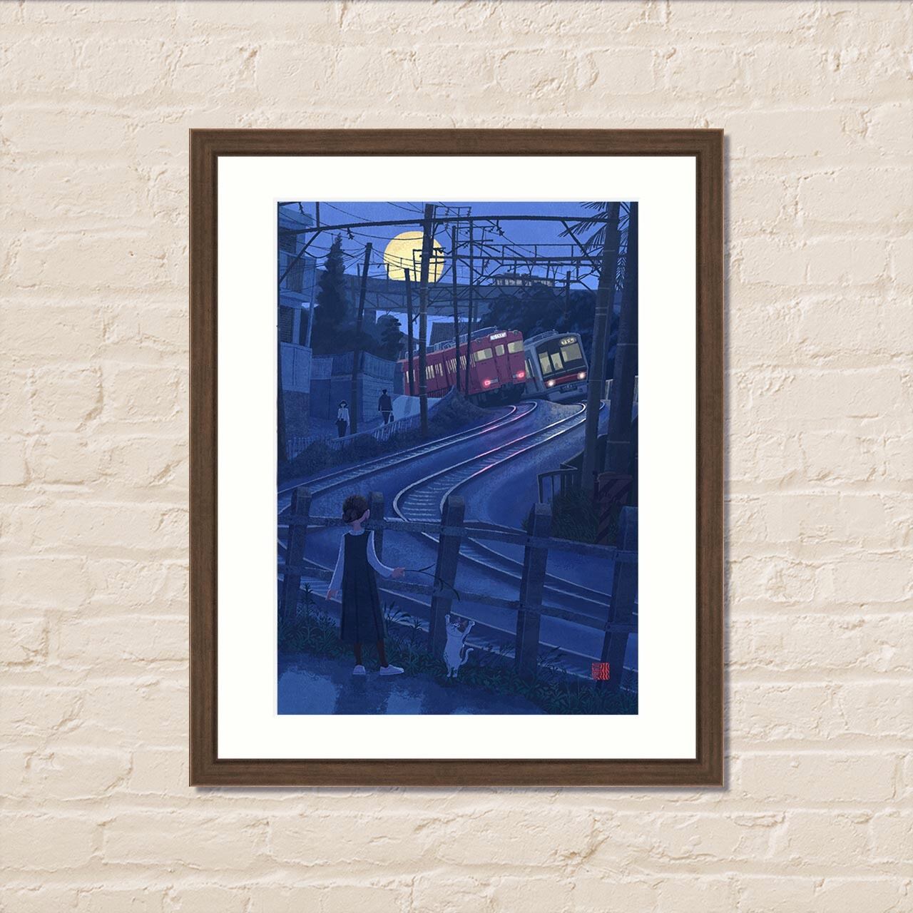 額装ジークレー版画『名鉄瀬戸線・矢田川辺り』八切りサイズ