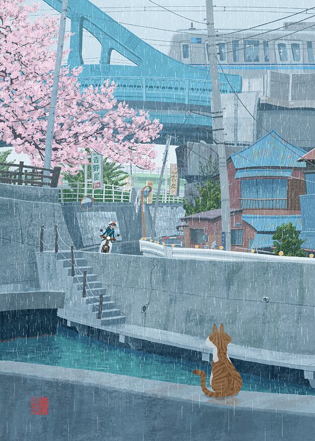 額装ジークレー版画『東京メトロ東西線・浦安雨景』八切りサイズ