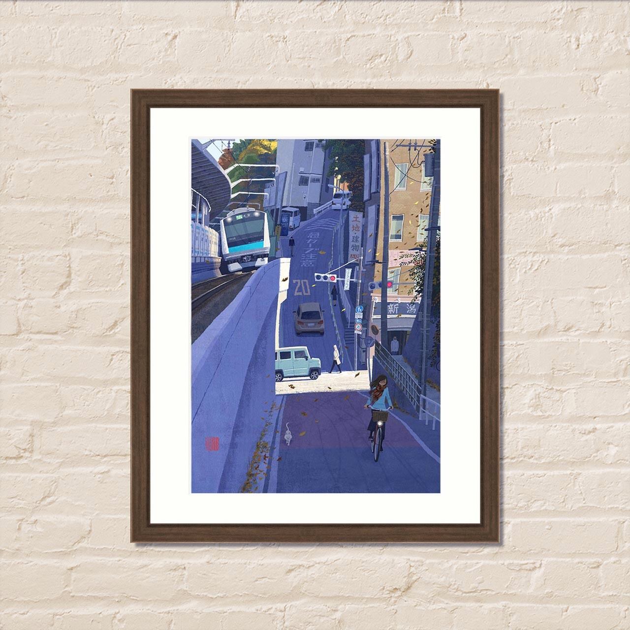 額装ジークレー版画『京浜東北線・西日暮里駅』八切りサイズ