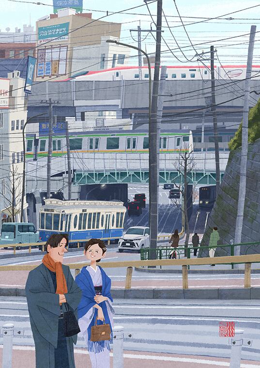 石神井川が穿つ台地の切れ目にあたる王子駅。ダイナミックなカーブを都電が行き来する飛鳥大坂の上には、東京十社のひとつ王子神社があります。
