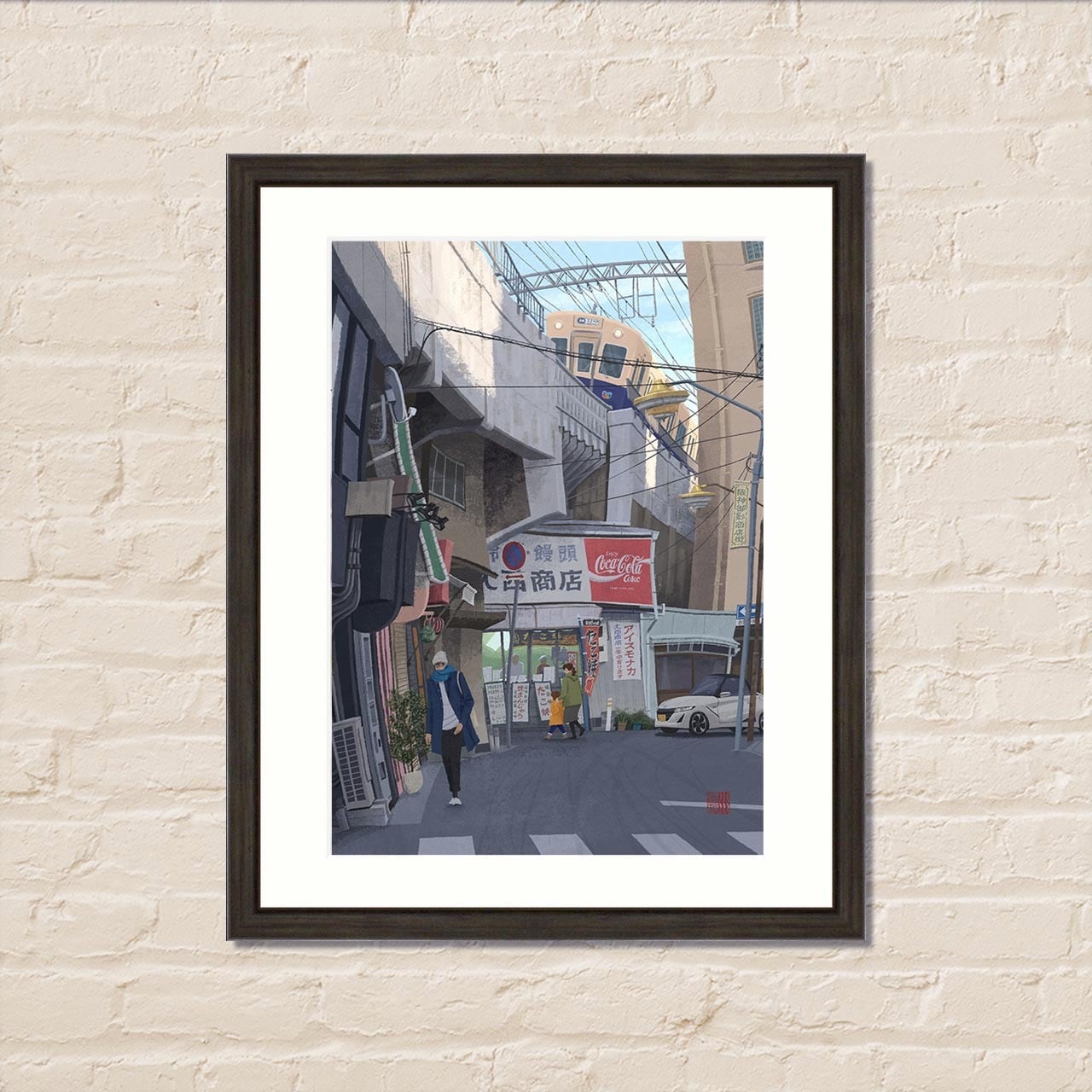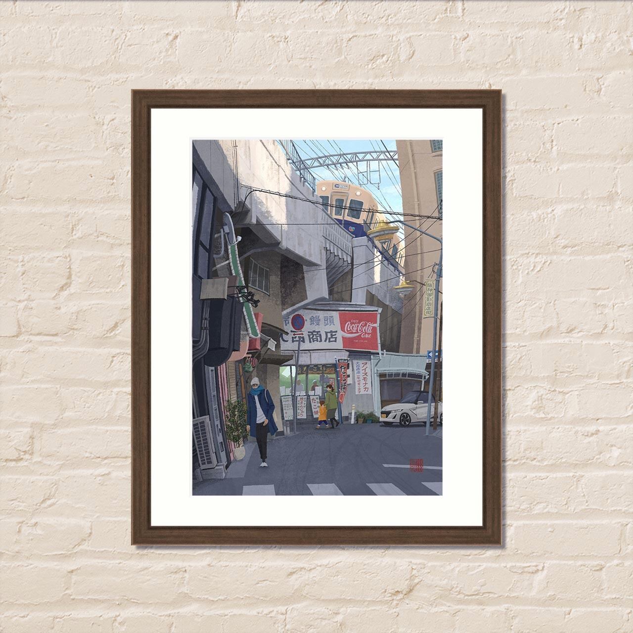 額装ジークレー版画『阪神本線・御影駅』八切りサイズ